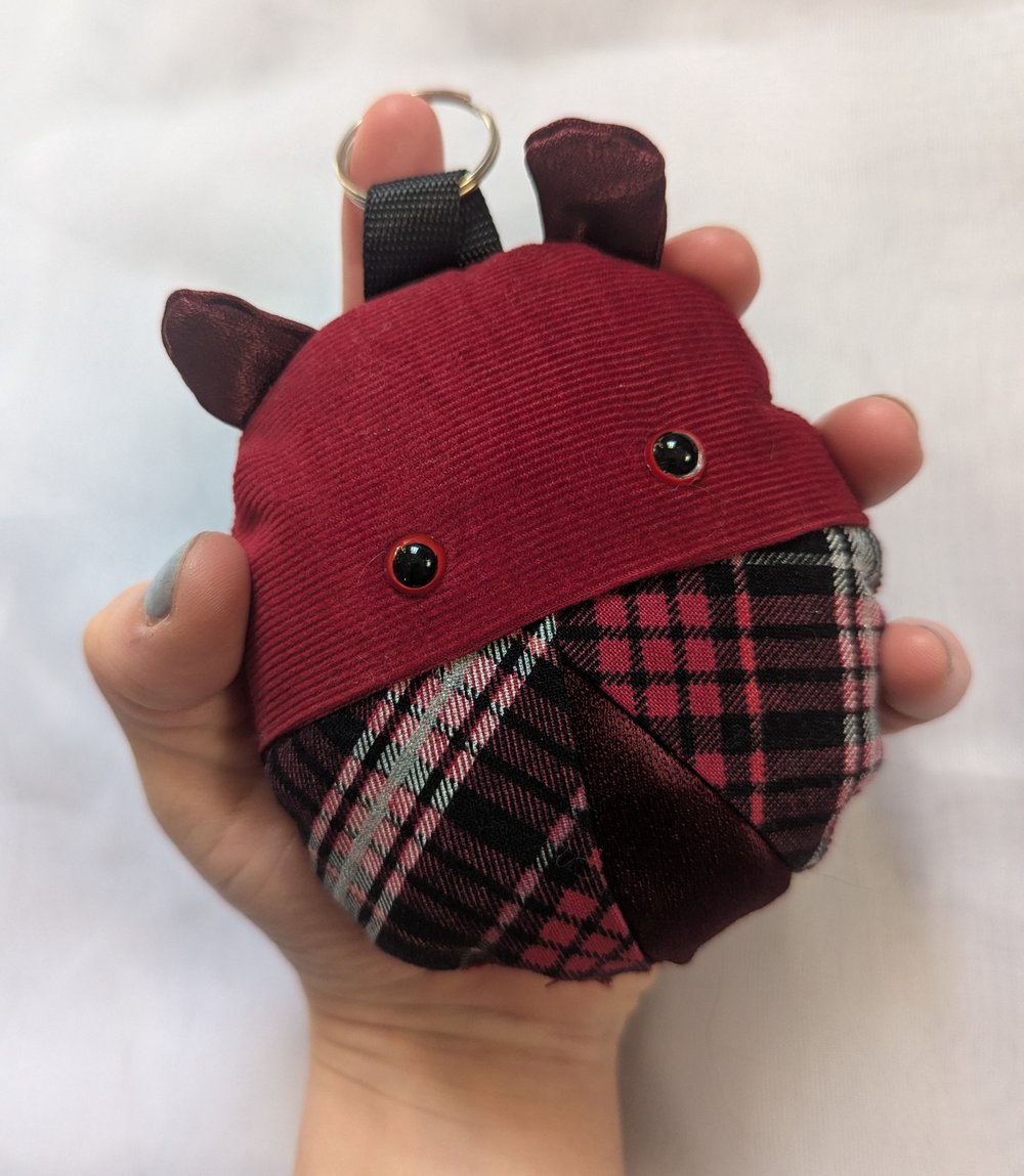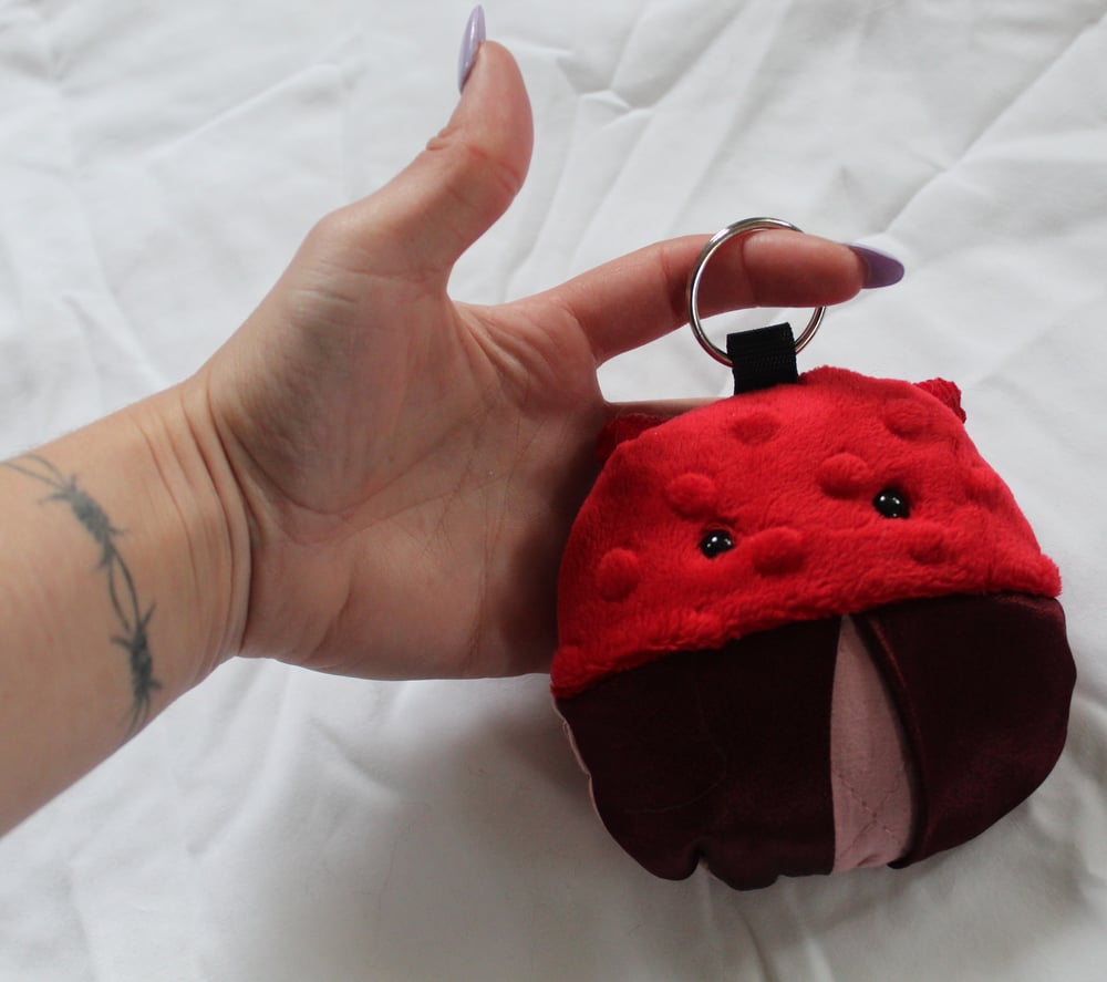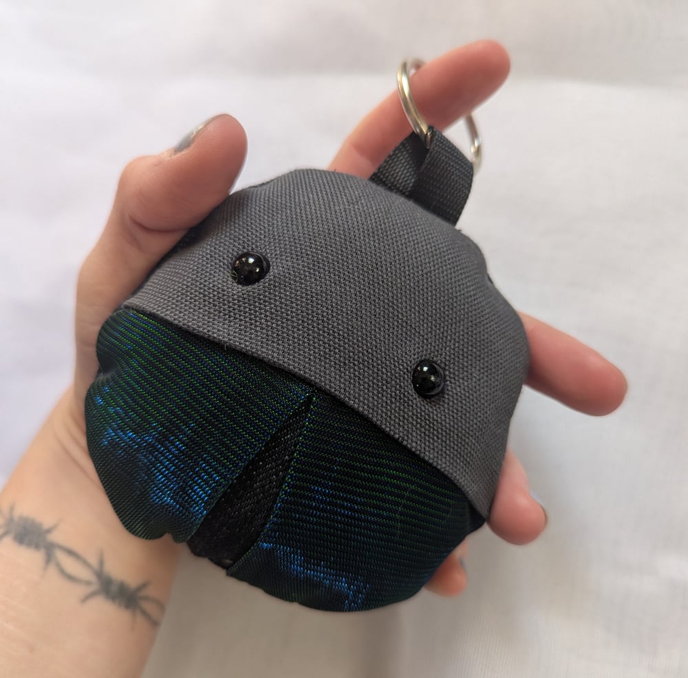 Mini beetle plush with keychain, measures roughly 4x4in